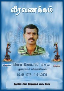 இத்தாவில் தரையிரக்கச் சமரில் மதன் தொடர்ந்து வெடிபொருள் வழங்கல் களநிர்வாகப் பொறுப்பாளராக தீவிரமாக செயற்பட்டார் . கட்டளைத் தளபதி பால்ராஜ் அவர்களுக்கு அருகில் நிலையமைத்த மதன், சிறப்புத் தளபதி இராசசிங்கம் துணைத் தளபதி நேசன் ஆகியோருடன் இணைந்து ஓய்வொழிச்சலின்றி செயற்பட்டார். மதுரன் , பாவலன் , மாறன், ஆரூரன் முதலான அணித்தலைவர்கள் மதனுடன் நின்று ஓய்வின்றி கடமையாற்றினர் . பெட்டிச் சண்டைகளில் வெடிபொருள் வழங்கலை திறமுடன் செயற்படுத்திய மதன், கனரக மோட்டார்களை ஒருங்கிணைத்தும் களமாடினார் . 2000 ம் ஆண்டு 4 ம் மாதம் 10 ம் நாள் எதிரி மேற்கொண்ட பாரிய முன்னேற்றங்களுக்கு எதிரான பெரும் சமரில் தீரத்துடன் செயற்பட்ட மதன் , தொடர்ந்து 11-04-2000 அன்று எதிரியின் செறிவான எறிகணை வீச்சுக்களுக்கு மத்தியில் எமது மோட்டார் நிலைக்கு எறிகணைகளை உழவூர்தியில் ஏற்றிக் கொண்டு சென்றபோது , எதிரியின் எறிகணைகள் உழவூர்தியின் மீது வீழ்ந்து வெடித்ததில் படுகாயமடைந்த மதன் சயனைட் அருந்தி வீரச்சாவைத் தழுவிக் கொண்டார்.
